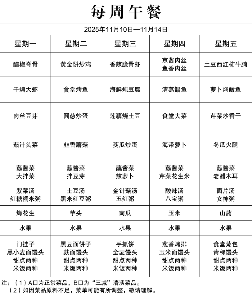 每周菜谱